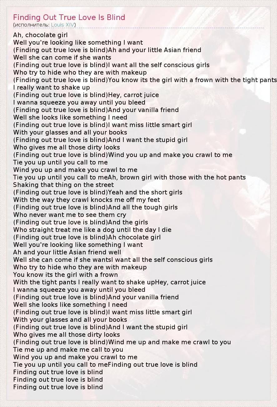 А как ты думаешь, о чем песня "Finding Out True Love Is Blind" ?