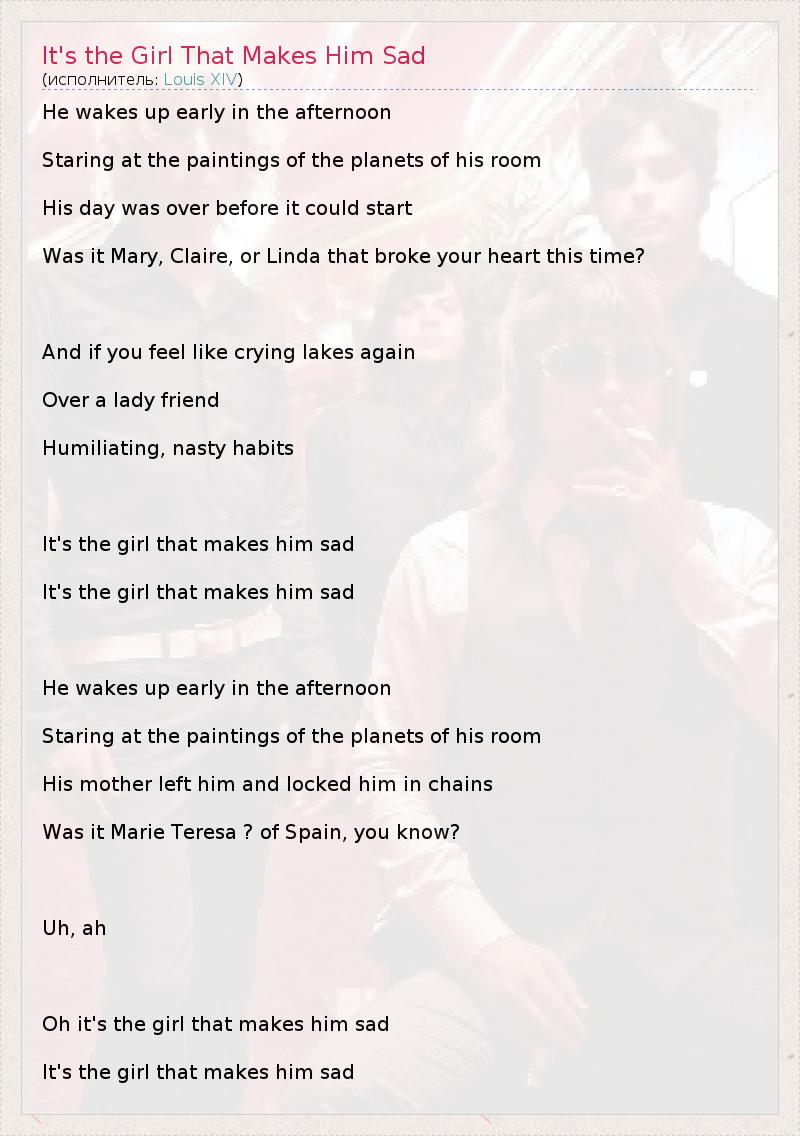 ГлавнаяИсполнителиLouis XIVIt's the Girl That Makes Him Sad