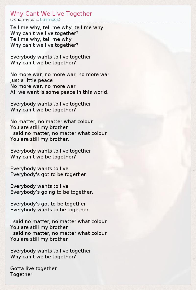 А как ты думаешь, о чем песня "Why Cant We Live Together" ?