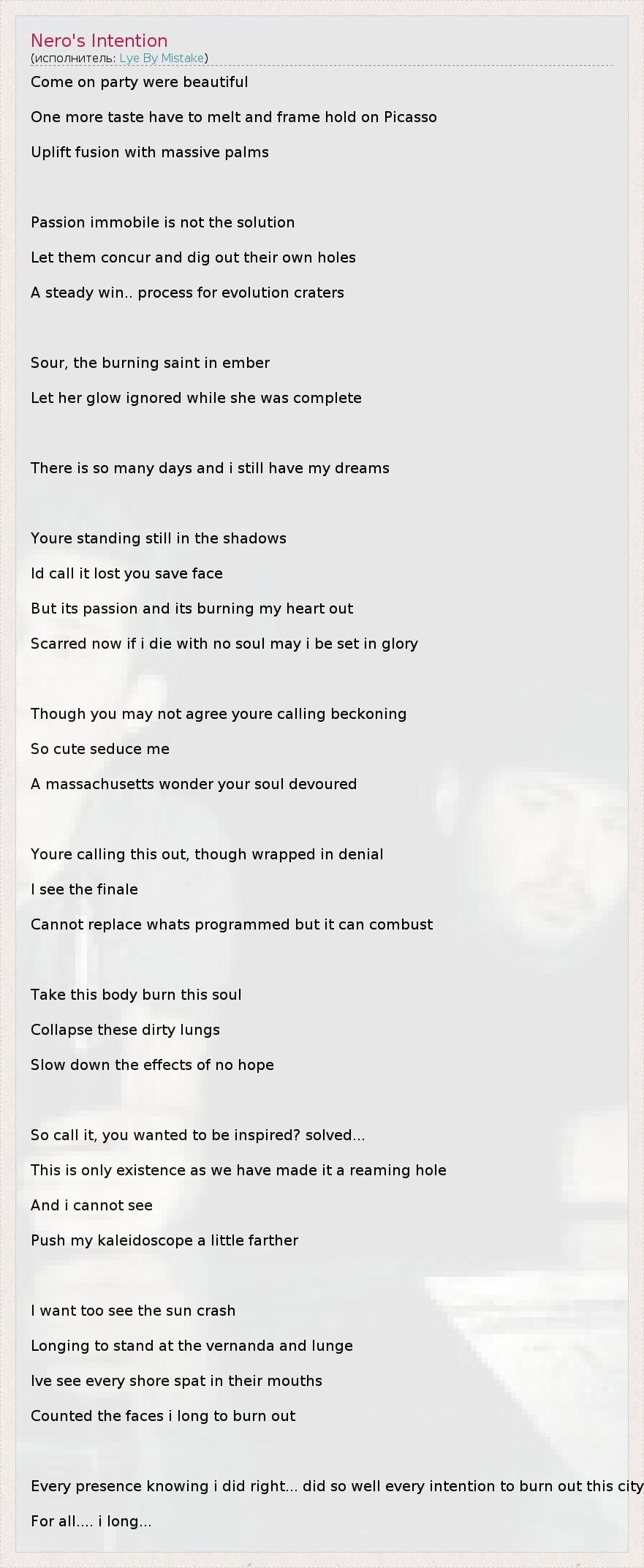 А как ты думаешь, о чем песня "Nero's Intention" ?