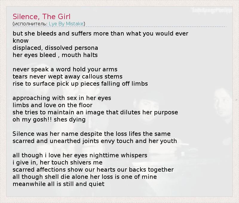 А как ты думаешь, о чем песня "Silence, The Girl" ?