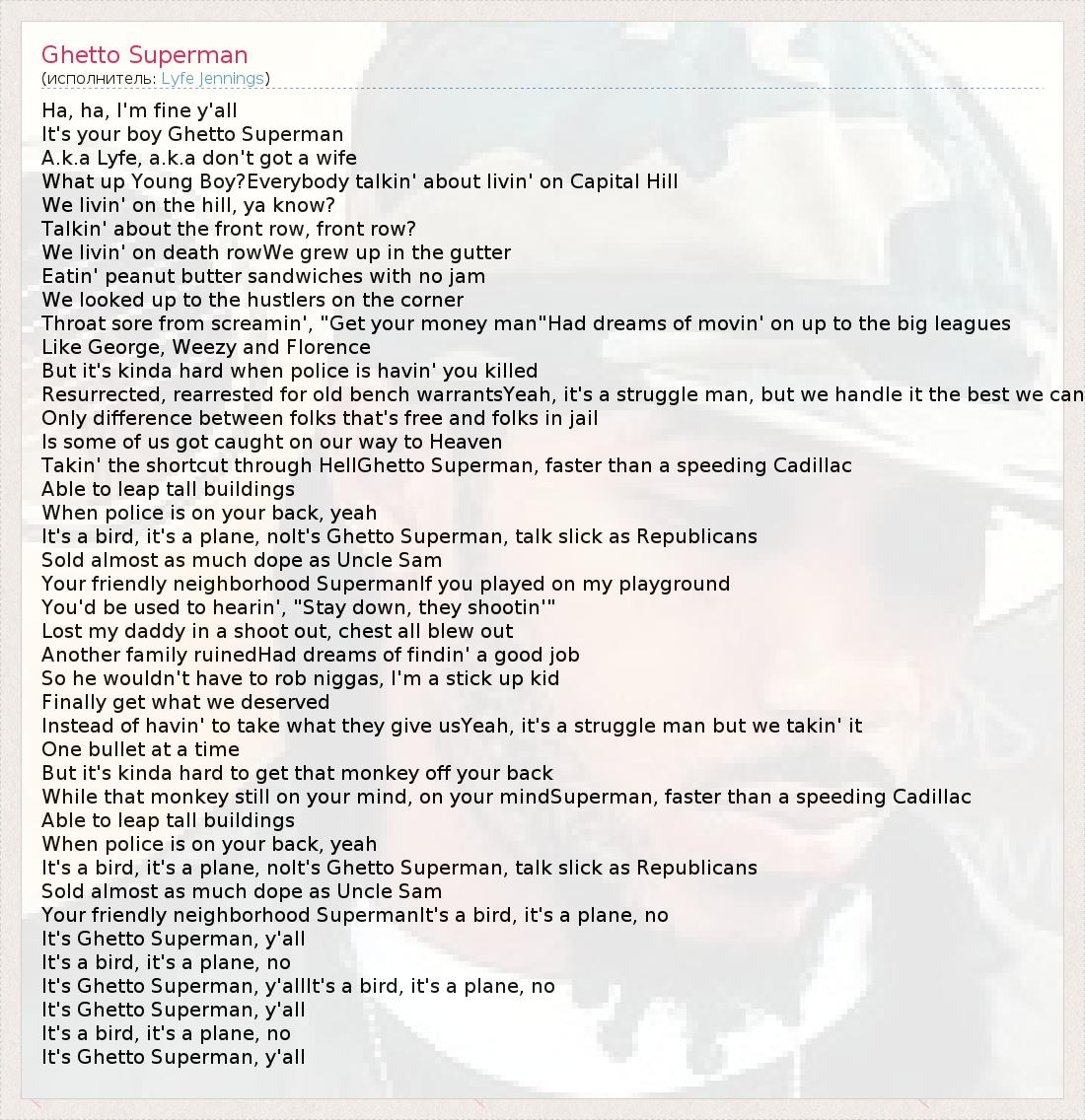 А как ты думаешь, о чем песня "Ghetto Superman" ?