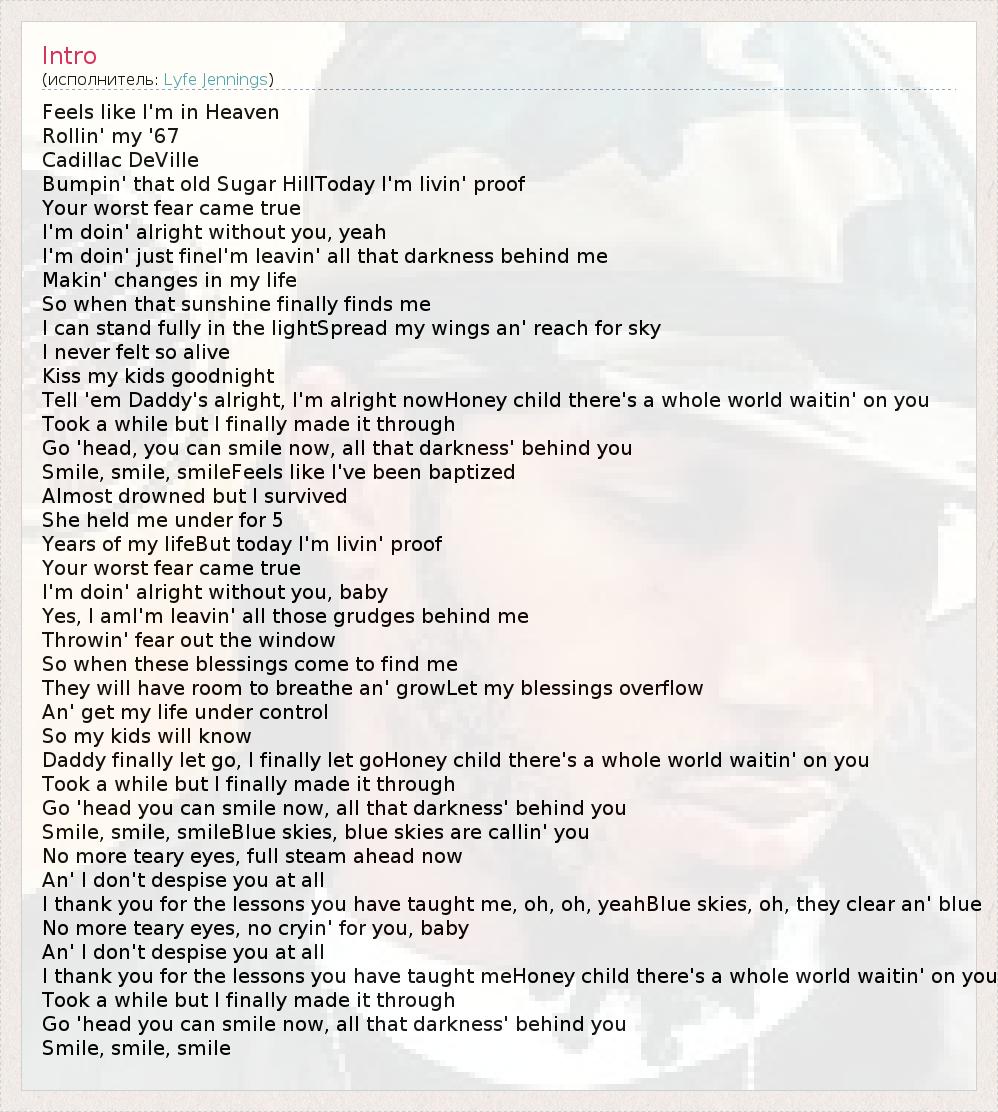 I thank you for the lessons you have taught meHoney child there's a whole world waitin' on you