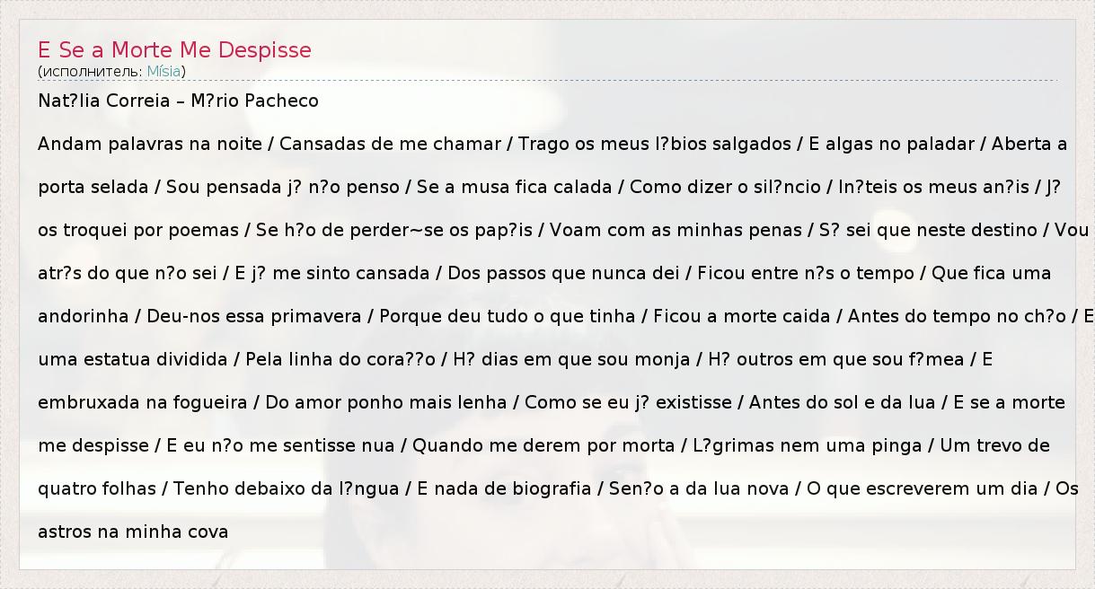 А как ты думаешь, о чем песня "E Se a Morte Me Despisse" ?