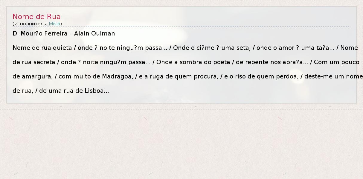 А как ты думаешь, о чем песня "Nome de Rua" ?