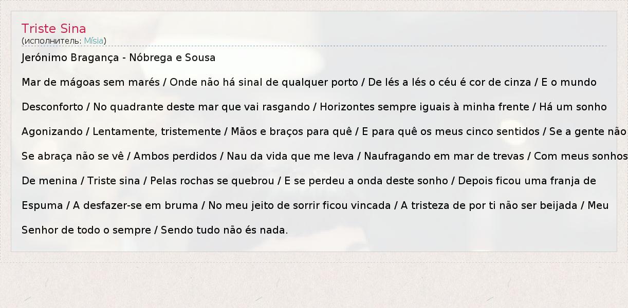А как ты думаешь, о чем песня "Triste Sina" ?