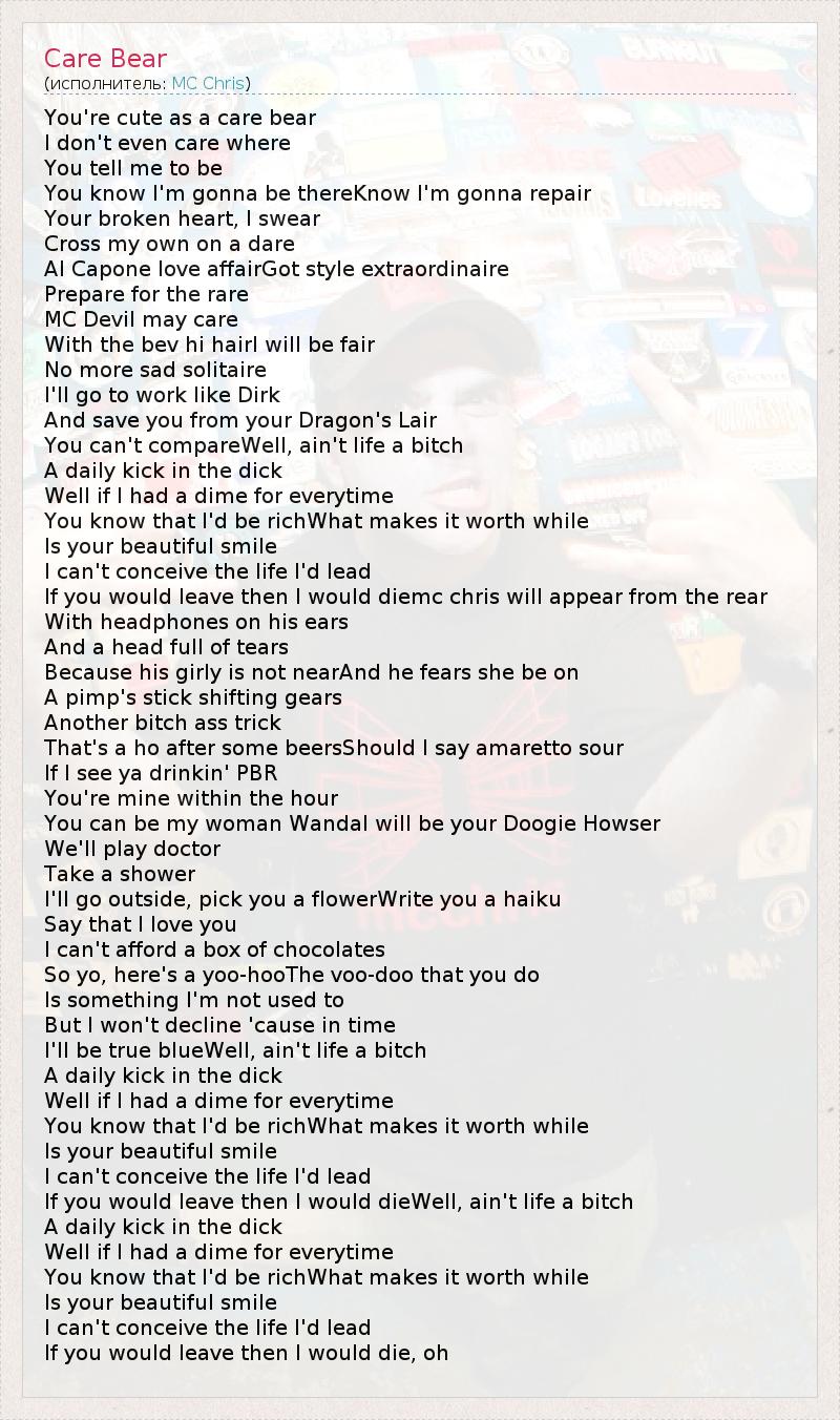 Это интересно:Кристофер Брендан Ворд IV, более известный как mc chris (заглавные буквы необязательны), рэпер и юморист-импровизатор родился 2 сентября, 1975, в Либертивилль, штат Иллинойс. Его отличительные черты - синтез таких образов как geek (на русский это примерно переводится как "ботаник, интересующийся компьютерами") и традиционного гангста имиджа, присущего многим хип-хоп исполнителям, а также высота... продолжение