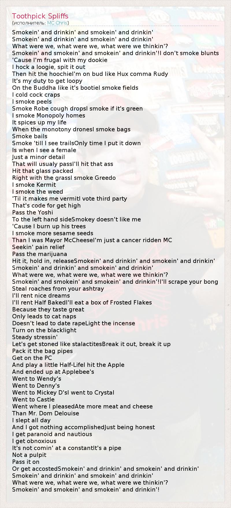 А как ты думаешь, о чем песня "Toothpick Spliffs" ?