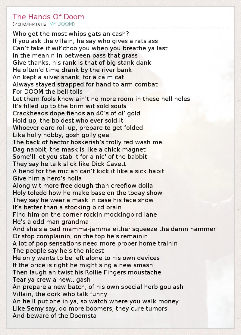 А как ты думаешь, о чем песня "The Hands Of Doom" ?