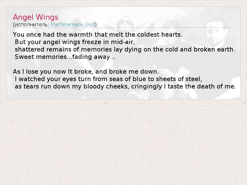 А как ты думаешь, о чем песня "Angel Wings" ?