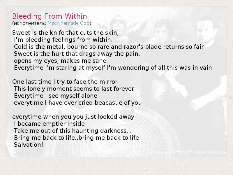 А как ты думаешь, о чем песня "Bleeding From Within" ?