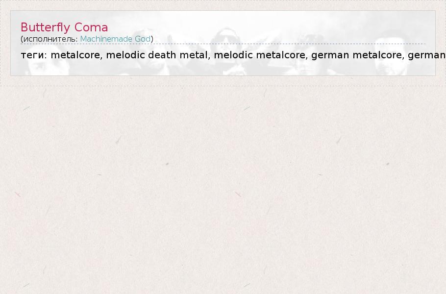 Это интересно:Группа Machinemade God была образована в начале 2003 года в Германии. Поначалу ребята играли на европейских концертах таких групп, как Caliban, As I Lay Dying, Hatebreed, God Forbid и других не менее известных коллективов. В 2004 году парни записали свой первый EP, состоявший из 4-х треков, который заявил о группе в определённых кругах.Уже в апреле-мае 2005 года Machinemade God отправляется в Данию для записи своего дебютного... продолжение