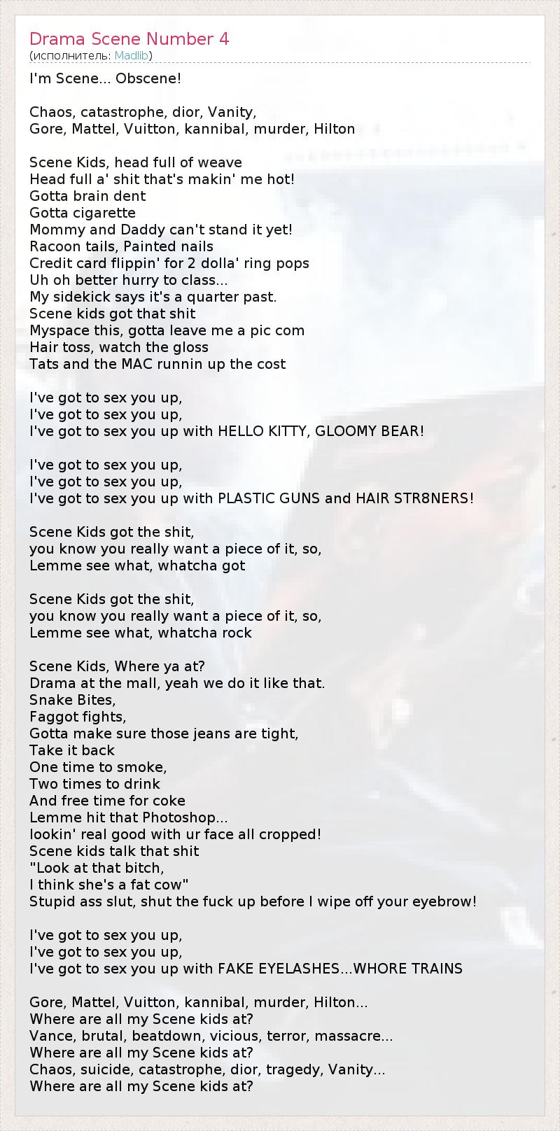 А как ты думаешь, о чем песня "Drama Scene Number 4" ?
