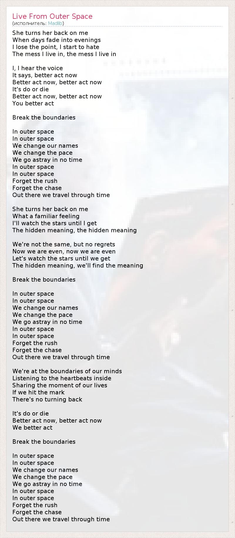 А как ты думаешь, о чем песня "Live From Outer Space" ?