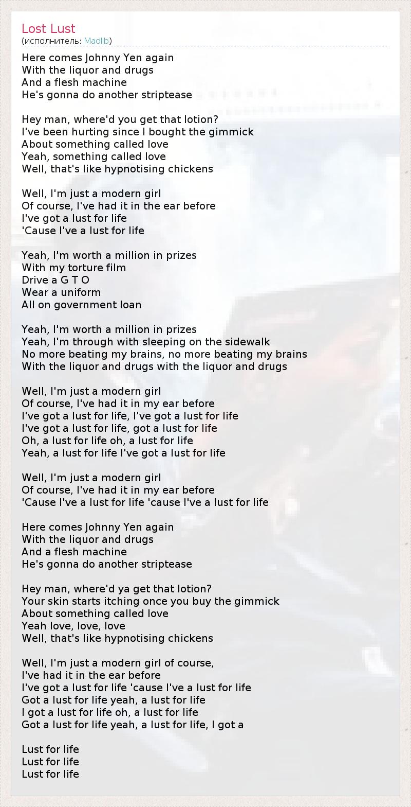 А как ты думаешь, о чем песня "Lost Lust" ?
