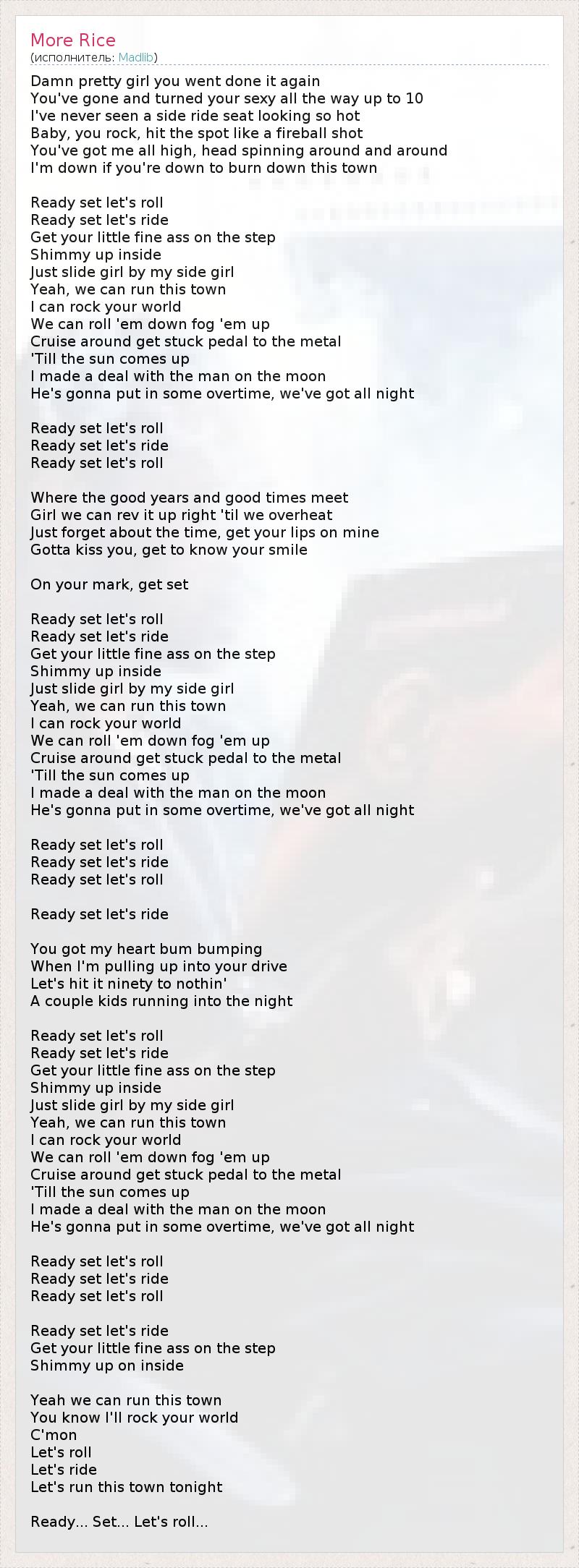 А как ты думаешь, о чем песня "More Rice" ?