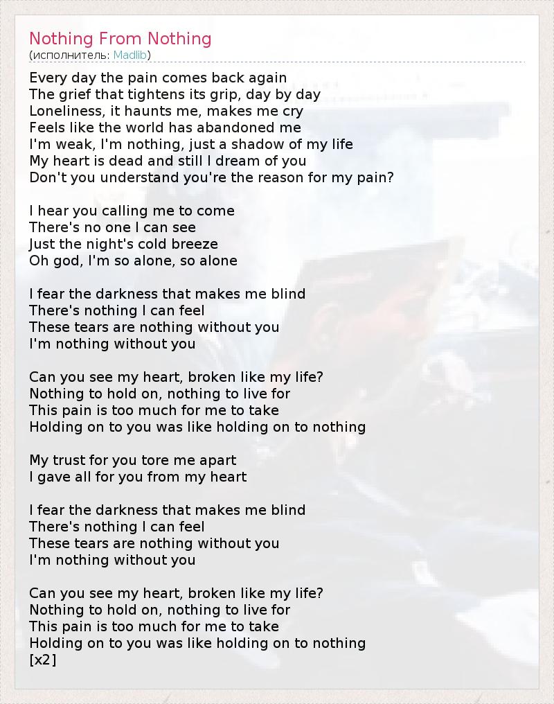 А как ты думаешь, о чем песня "Nothing From Nothing" ?