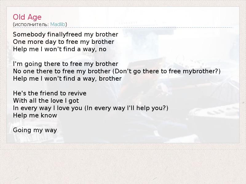 Это интересно:У него много имен, под которыми он издаётся (и лишь одно настоящее - Otis Jackson Jr.). Настоящие любители андеграунда знают, Madlib - парень непростой.Рождённый в г.Окснард, штат Калифорния (Oxnard, CA) сын певца R&B 60-х Отиса Джексона старшего (Otis Jackson Sr.), Madlib своим репертуаром игнорирует простую классификацию. Его первым проектом была широко известная в узких... продолжение