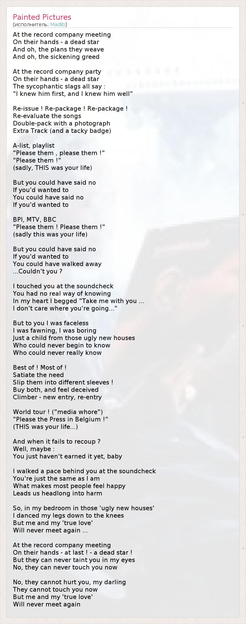 А как ты думаешь, о чем песня "Painted Pictures" ?