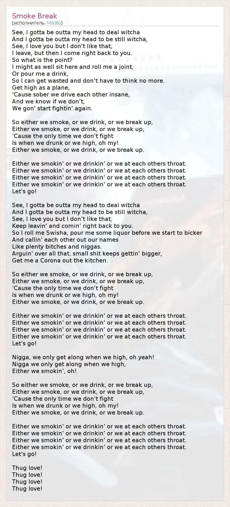 А как ты думаешь, о чем песня "Smoke Break" ?