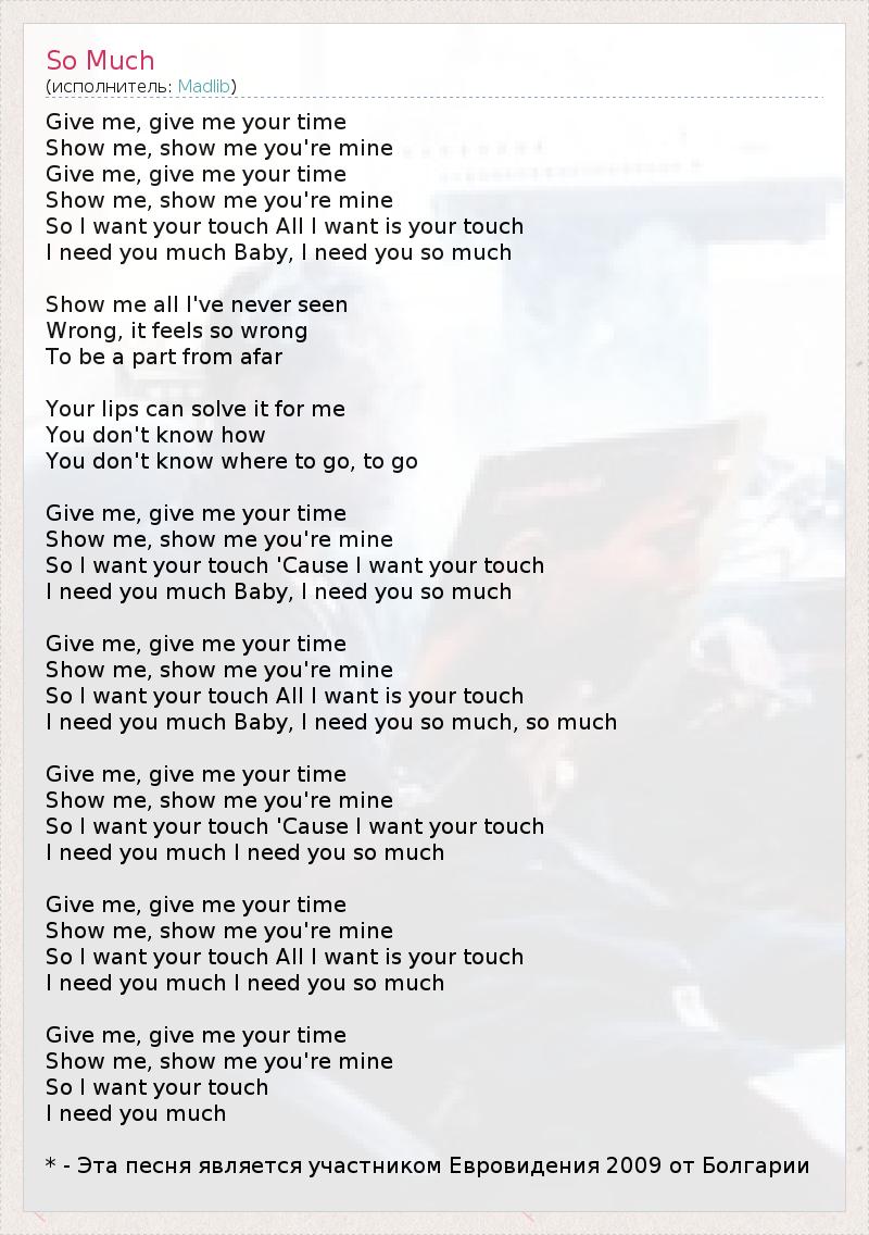 Мне так нужно твоё прикосновение… Это всё, что мне нужно….
