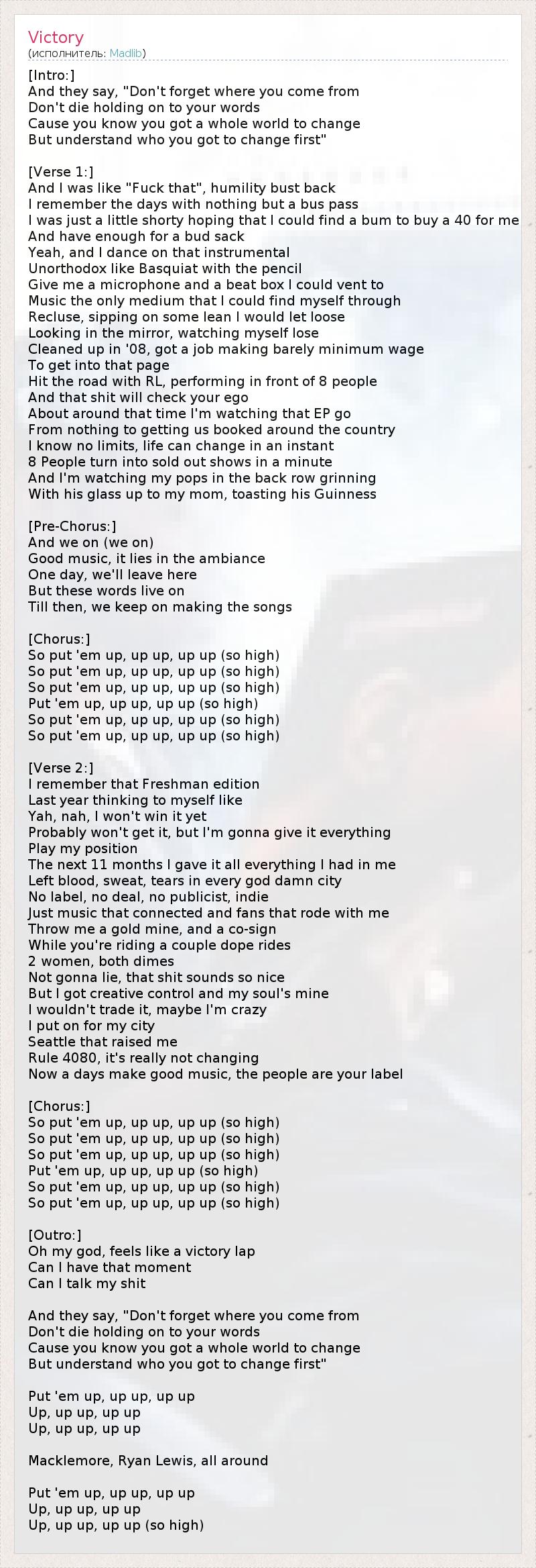 А как ты думаешь, о чем песня "Victory" ?