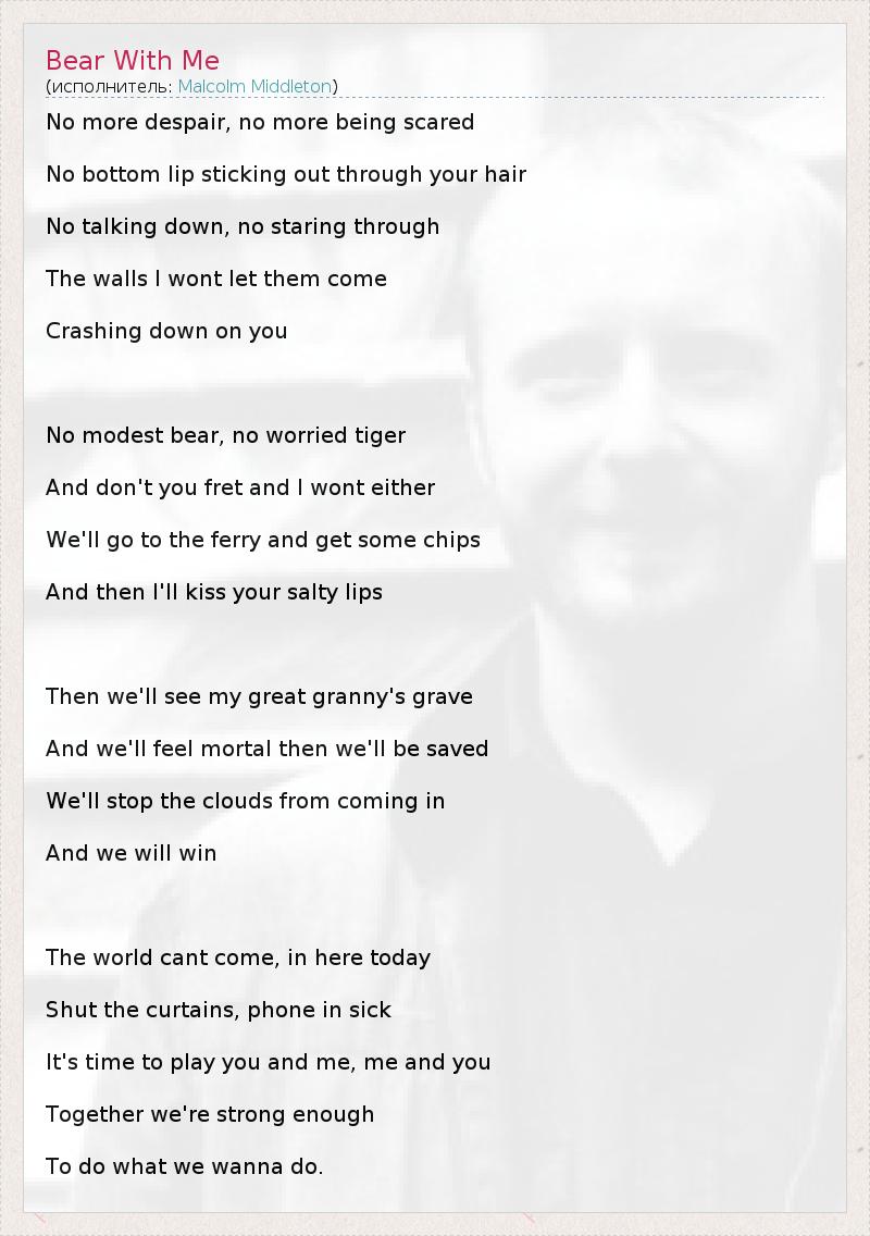 А как ты думаешь, о чем песня "Bear With Me" ?