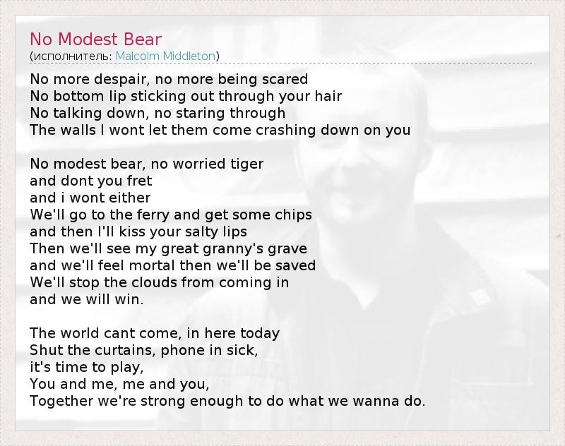 А как ты думаешь, о чем песня "No Modest Bear" ?