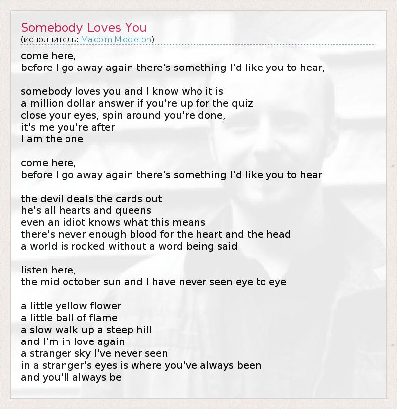 А как ты думаешь, о чем песня "Somebody Loves You" ?
