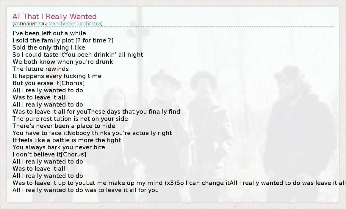 А как ты думаешь, о чем песня "All That I Really Wanted" ?