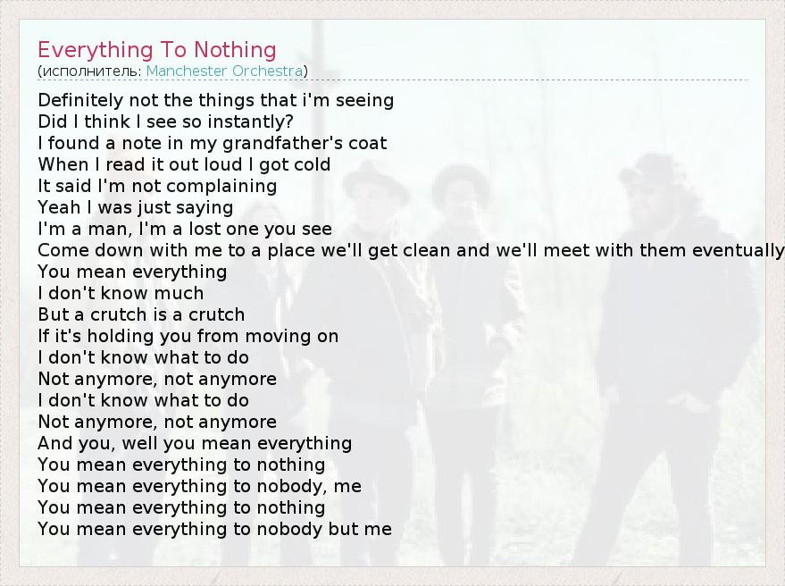 А как ты думаешь, о чем песня "Everything To Nothing" ?