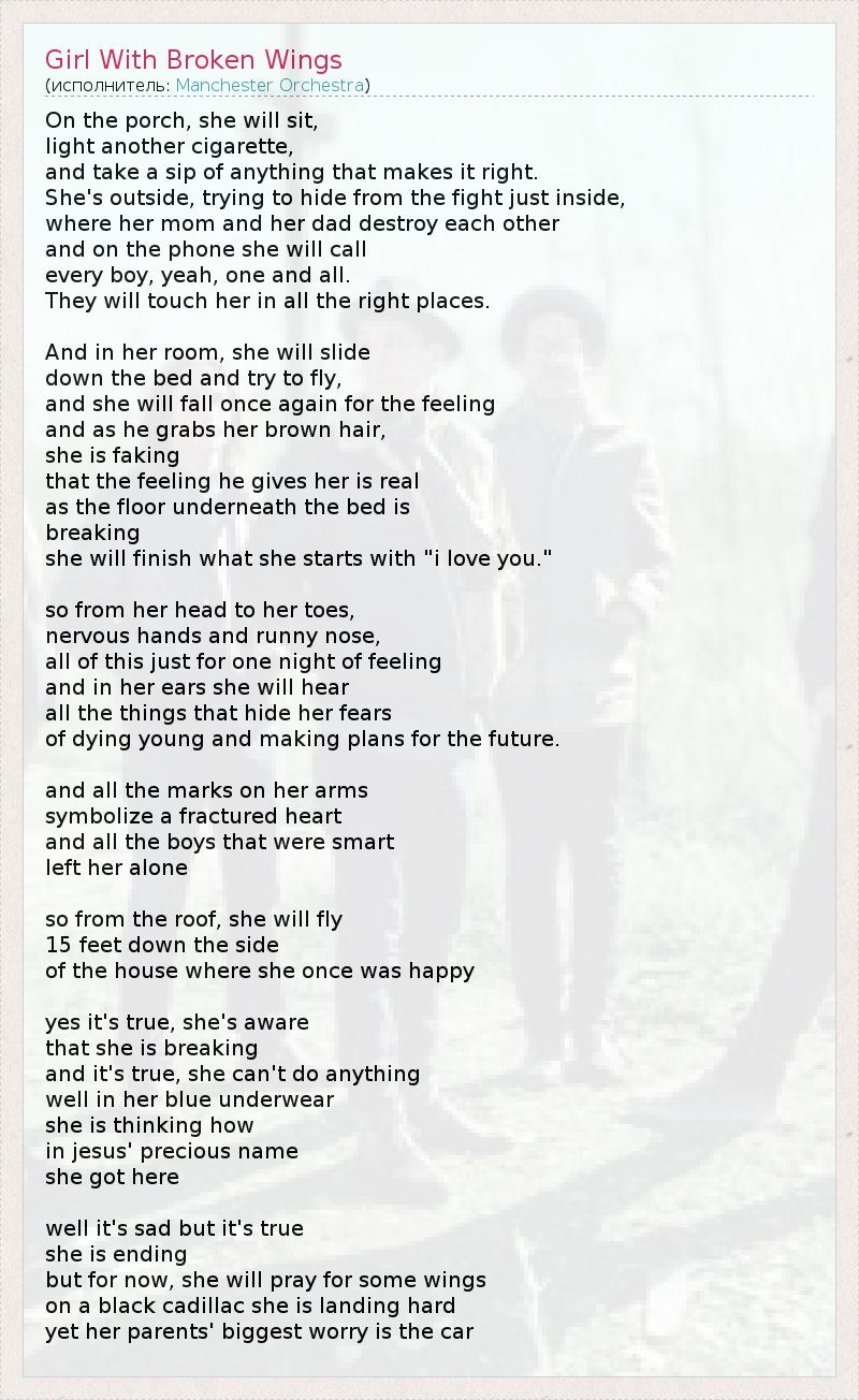 А как ты думаешь, о чем песня "Girl With Broken Wings" ?