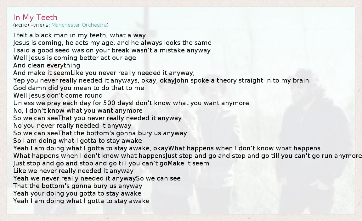 А как ты думаешь, о чем песня "In My Teeth" ?