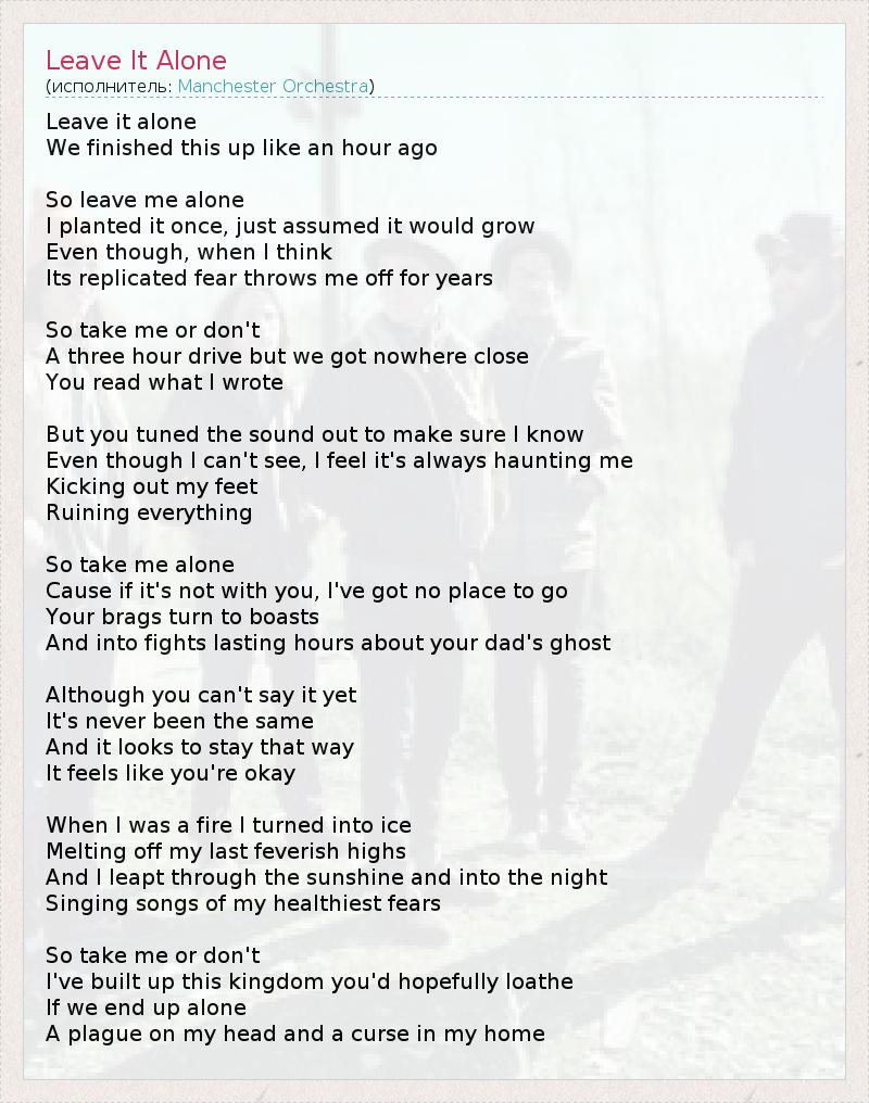 А как ты думаешь, о чем песня "Leave It Alone" ?