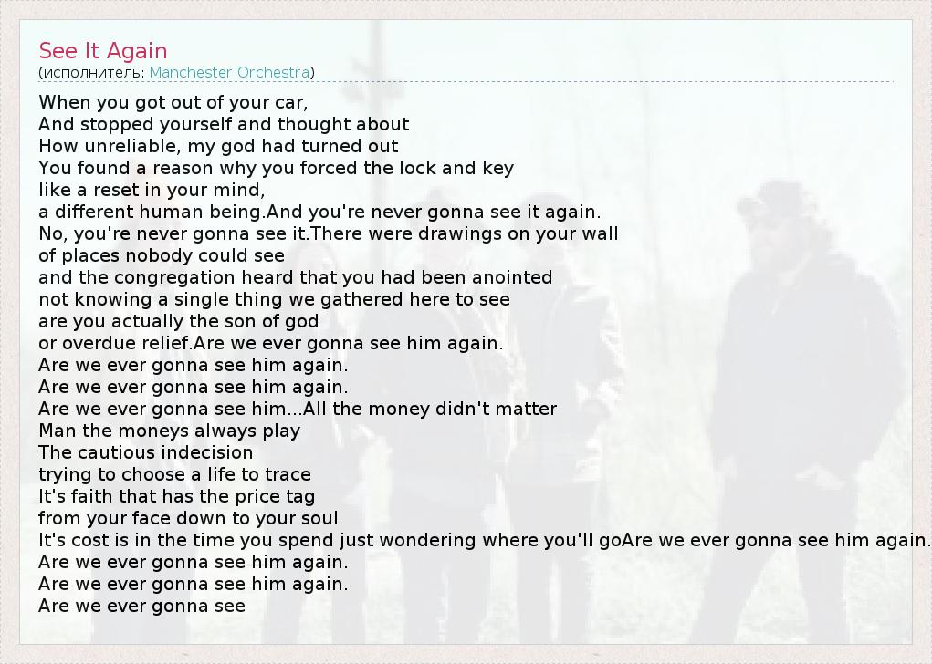 It's cost is in the time you spend just wondering where you'll goAre we ever gonna see him again.