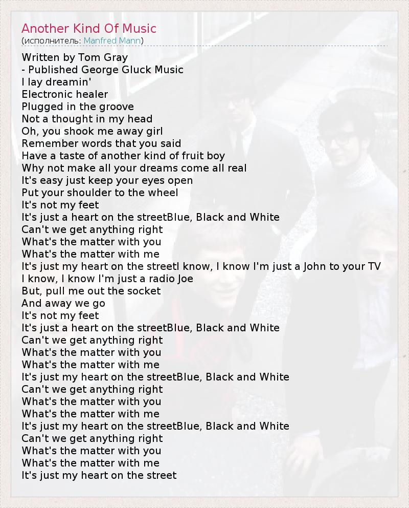 А как ты думаешь, о чем песня "Another Kind Of Music" ?