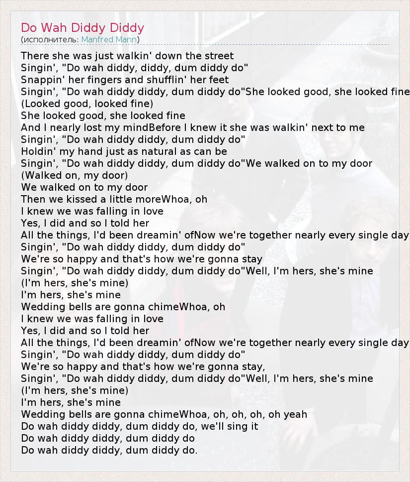 А как ты думаешь, о чем песня "Do Wah Diddy Diddy" ?