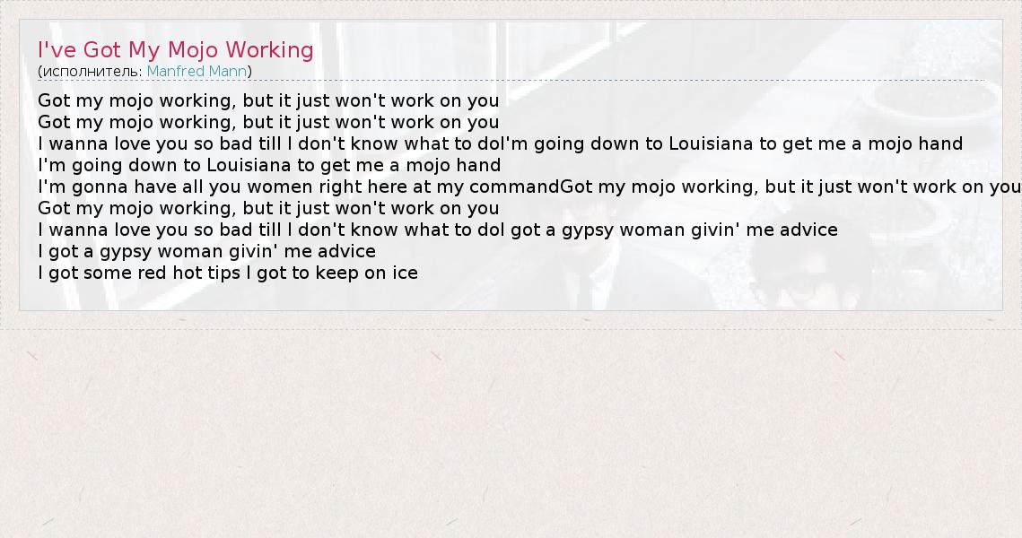ГлавнаяИсполнителиManfred MannI've Got My Mojo Working