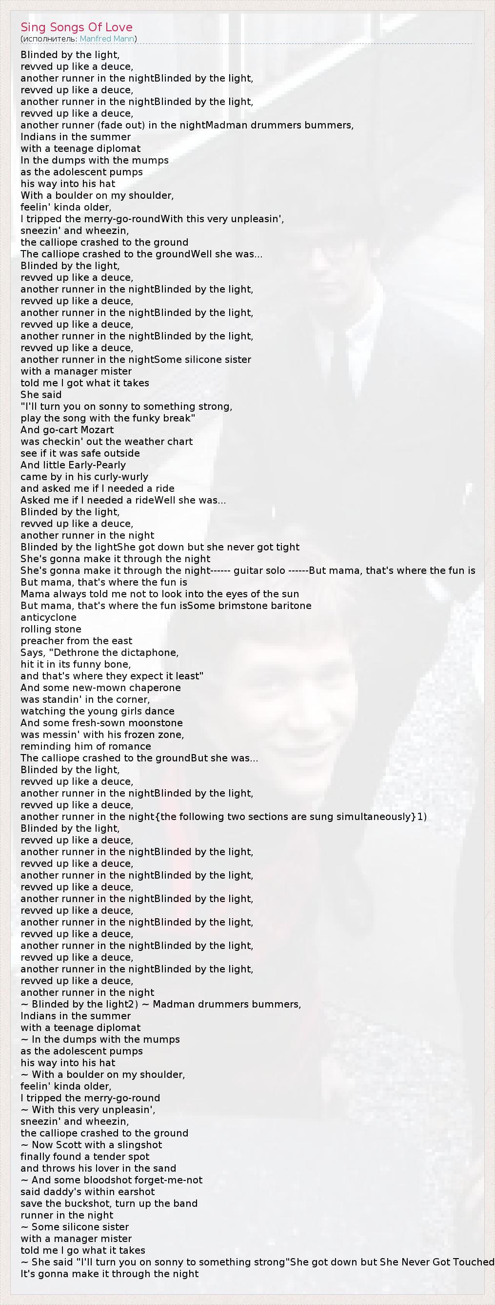 ~ Blinded by the light2) ~ Madman drummers bummers,