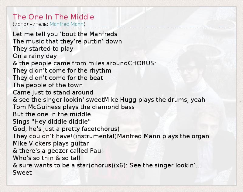 Это интересно:The Mann-Hugg Blues Brothers (таково было первое название коллектива) образовались в Лондоне в декабре 1962 года и оказались в эпицентре клубной блюз-революции (рядом с будущими чарт-конкурентами The Rolling Stones и The Yardbirds). В первом составе группы играли клавишник Манфред Мэнн (настоящее имя Манфред Любовиц, родился 21 октября 1940 года в Йоганнесбурге, Южная Африка), ударник Майк Хагг (Mike Hugg), гитарист Майк Викерс... продолжение