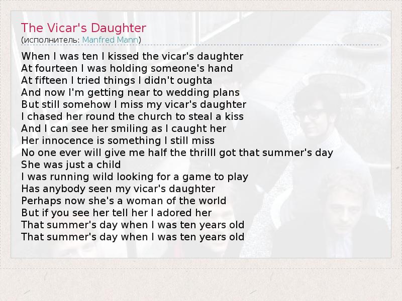 А как ты думаешь, о чем песня "The Vicar's Daughter" ?