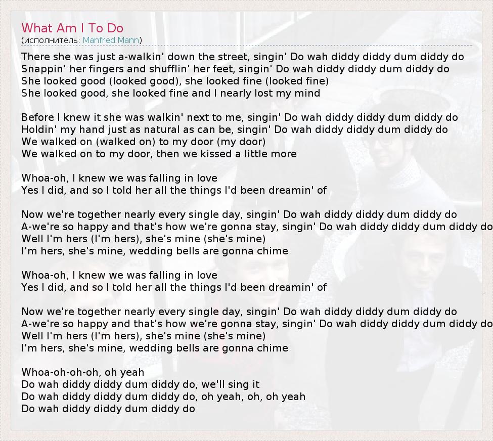 Before I knew it she was walkin' next to me, singin' Do wah diddy diddy dum diddy do