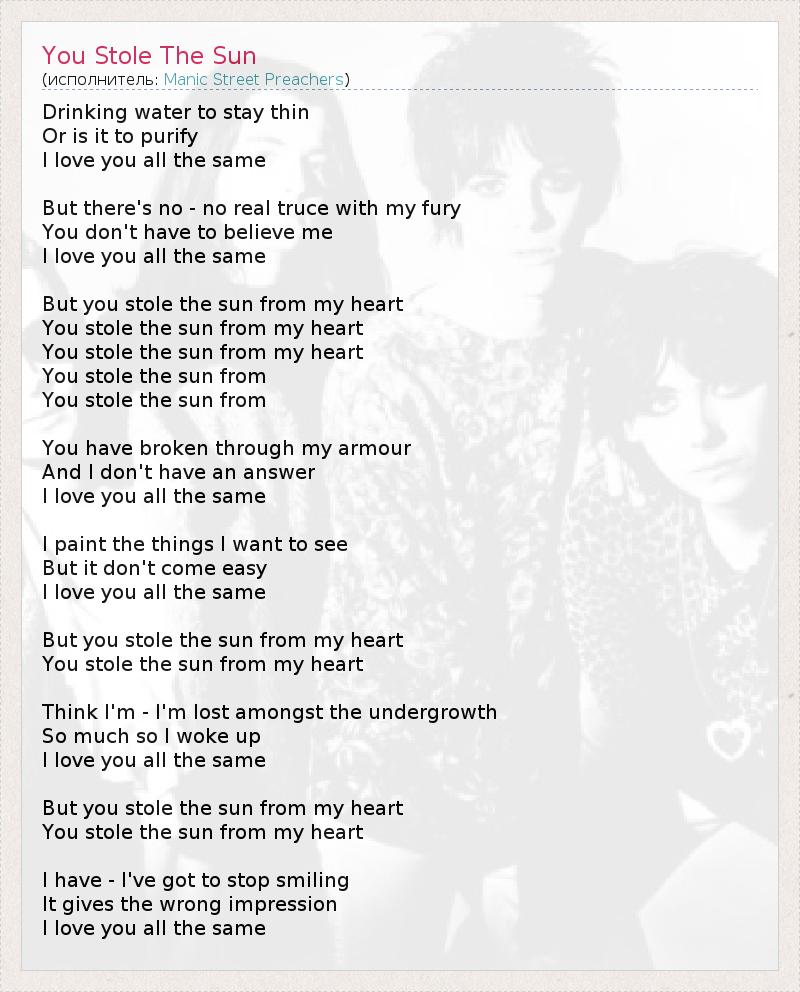 А как ты думаешь, о чем песня "You Stole The Sun" ?