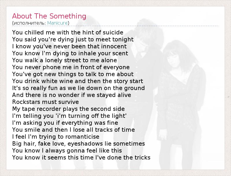 А как ты думаешь, о чем песня "About The Something" ?