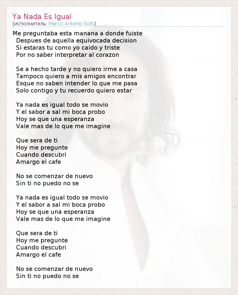 А как ты думаешь, о чем песня "Ya Nada Es Igual" ?