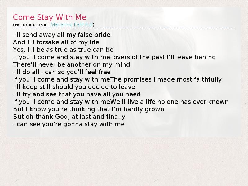 А как ты думаешь, о чем песня "Come Stay With Me" ?