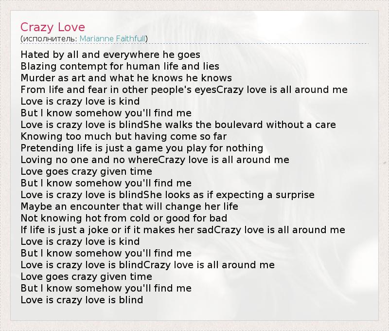 А как ты думаешь, о чем песня "Crazy Love" ?