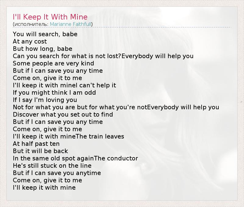 А как ты думаешь, о чем песня "I'll Keep It With Mine" ?