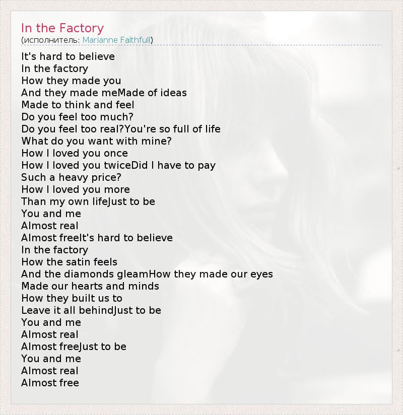 А как ты думаешь, о чем песня "In the Factory" ?