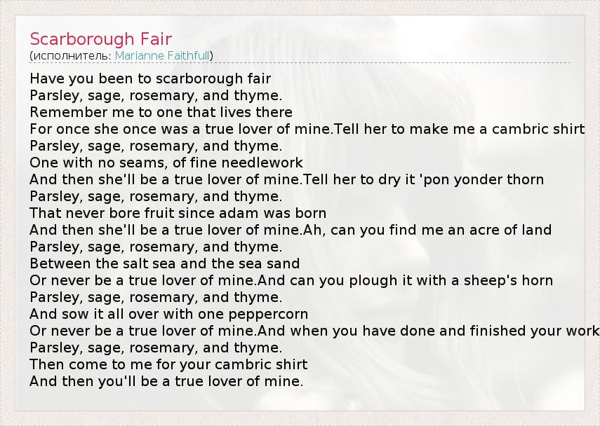 А как ты думаешь, о чем песня "Scarborough Fair" ?